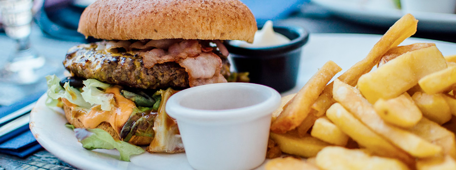 Carne de novilho, queijo, bacon, alface & batata frita